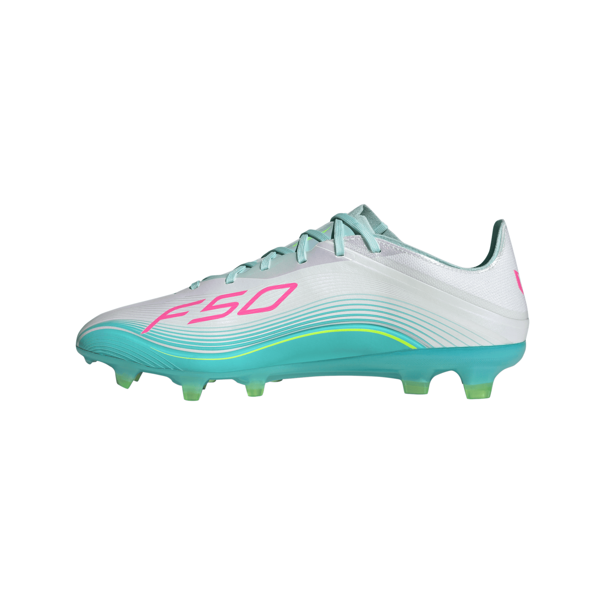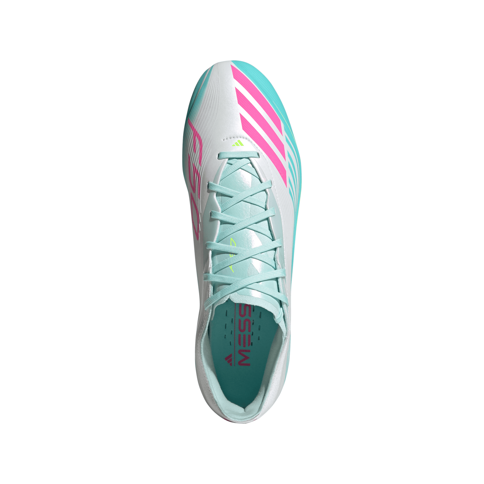 Adidas F50 Messi Pro FG Firm Ground Soccer Cleat - Cloud White/Lucid Pink/Flash Aqua